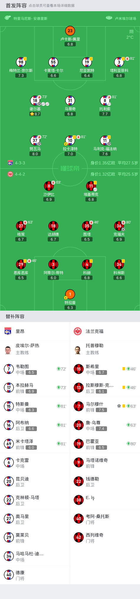 里昂3-2逆转法兰克福,谢尔基一射两传,马利克-福法纳破门