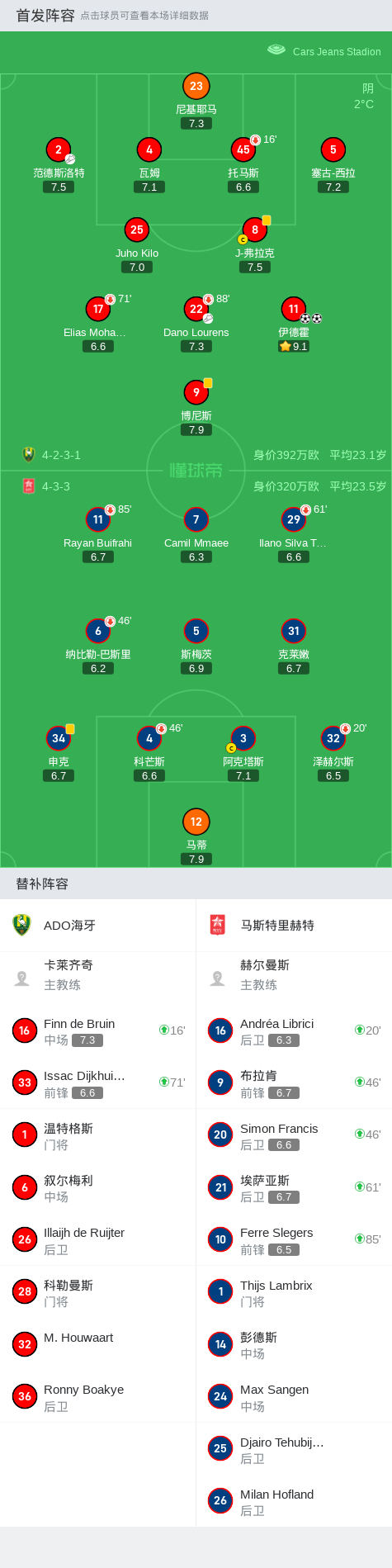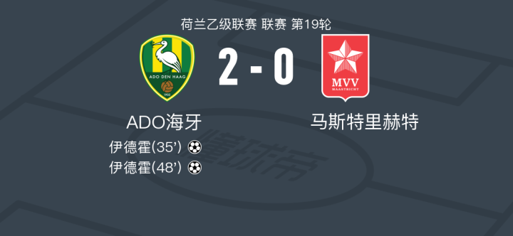 ADO海牙2-0马斯特里赫特,伊德霍独中两元