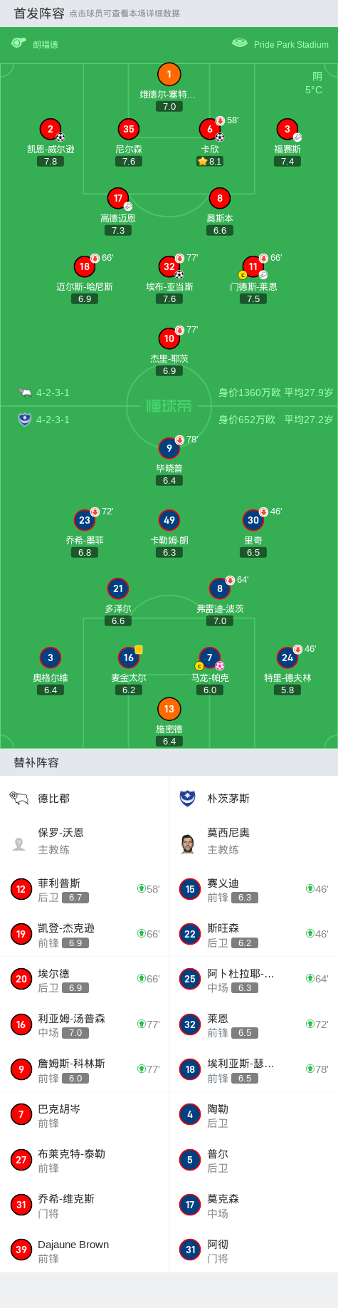 第23分钟,德比郡球员高德迈恩助攻卡欣打入一球。