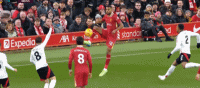第19分钟,罗伯逊停球失误随后放倒对手被裁判直红罚下,利物浦十人应战