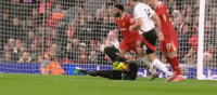 第45+1分钟,富勒姆解围不力,萨拉赫迎球欲打门抡空