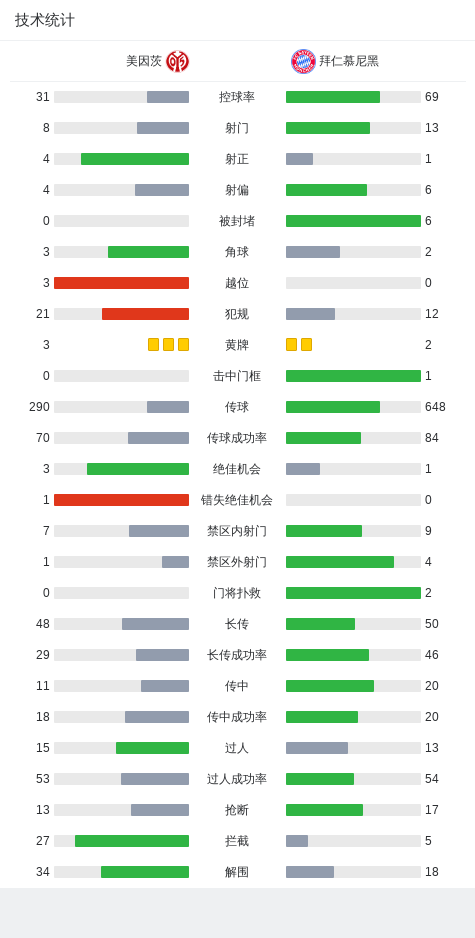 第29分钟,美因茨球员禁区内推射,皮球被门将没收