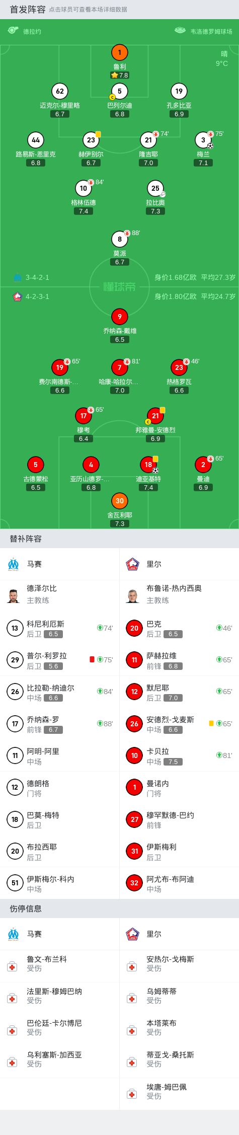 马赛1-1里尔双方握手言和,梅兰先拔头筹,迪亚基特扳平
