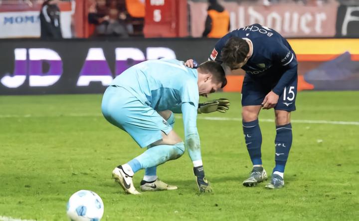 对阵柏林联合时,波鸿守门员头部被球迷投掷的打火机击中