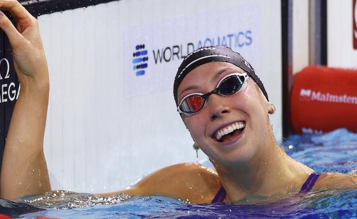 女子50米自由泳半决赛:美国选手沃尔什22秒87破世界纪录。