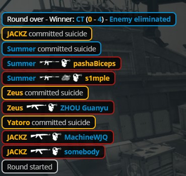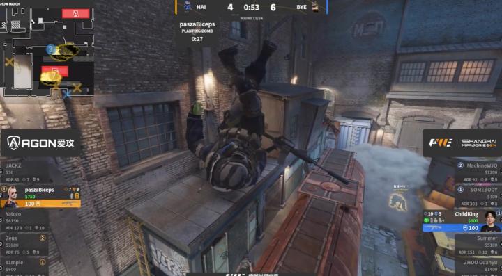 比赛地图为新火车,世界队提速B区,CN队Summer首回合就完成刀杀。