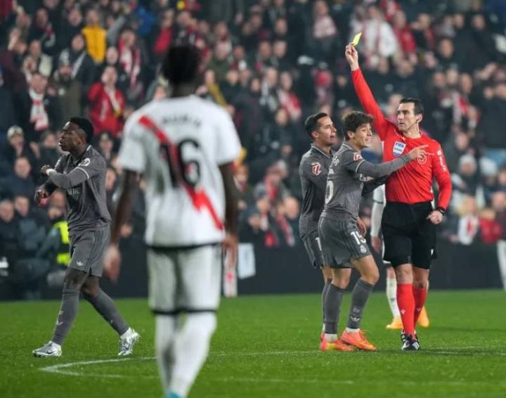 “在那次事件之前,维尼修斯在一次反击中被拉拽,他向裁判要求出示黄牌,你能猜到马丁内斯-穆努埃拉(主裁判)给谁出示了黄牌吗?是给维尼修斯。”