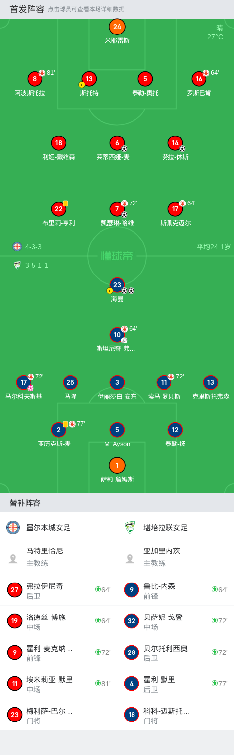第12分钟,堪培拉联女足球员斯坦尼奇-弗勒迪助攻海曼打入一球。