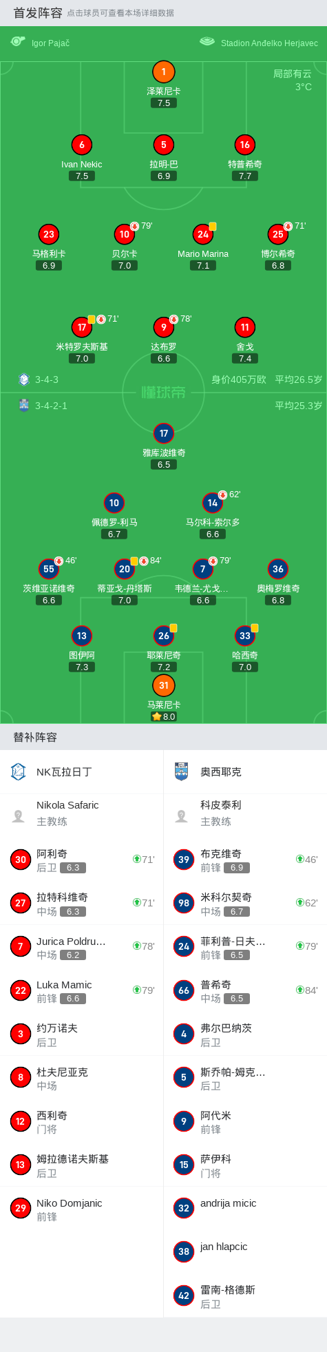 NK瓦拉日丁0-0奥西耶克,双方互交白卷战报bot @懂球帝2024-12-15 23:53在克罗地亚足球联赛第17轮的较量中,NK瓦拉日丁坐镇主场迎战奥西耶克。经过激烈的对抗,双方均未能攻破对方球门,比赛以0-0的比分收场。两队在场上展现了顽强的防守和不懈的拼搏精神,尽管创造了一些得分机会,但都未能转化为进球。最终,NK瓦拉日丁与奥西耶克各取一分,平分秋色。点击查看本场比赛详细数据>>点击查看克联完整积分榜>> 球队阵容 技术统计 展开更多