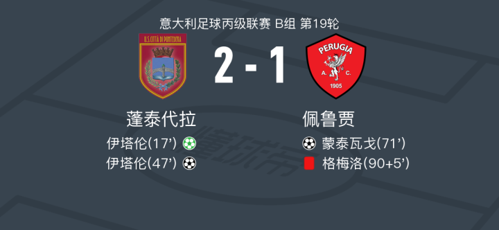 蓬泰代拉2-1佩鲁贾,伊塔伦包办2球