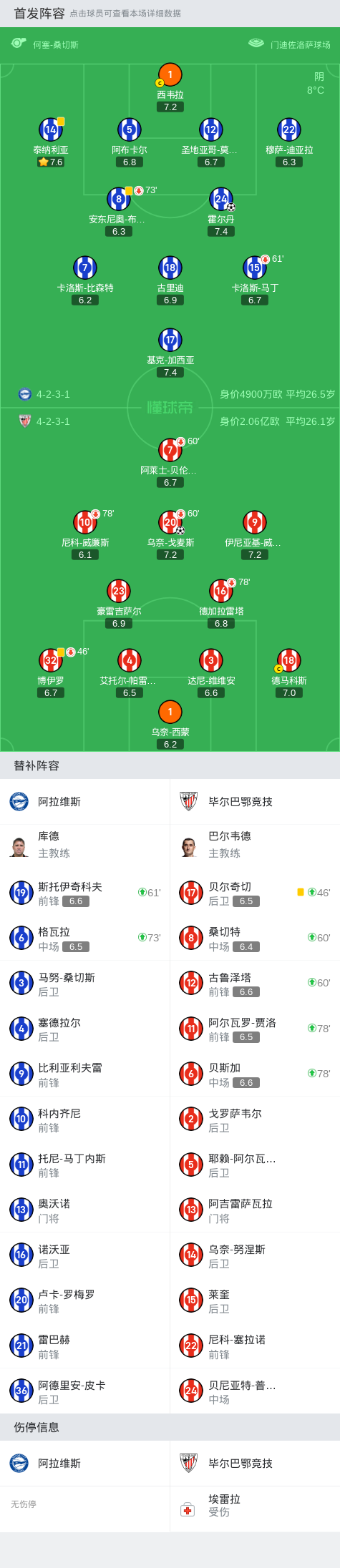 阿拉维斯1-1毕尔巴鄂竞技,乌奈-戈麦斯破门,维维安绝杀被吹