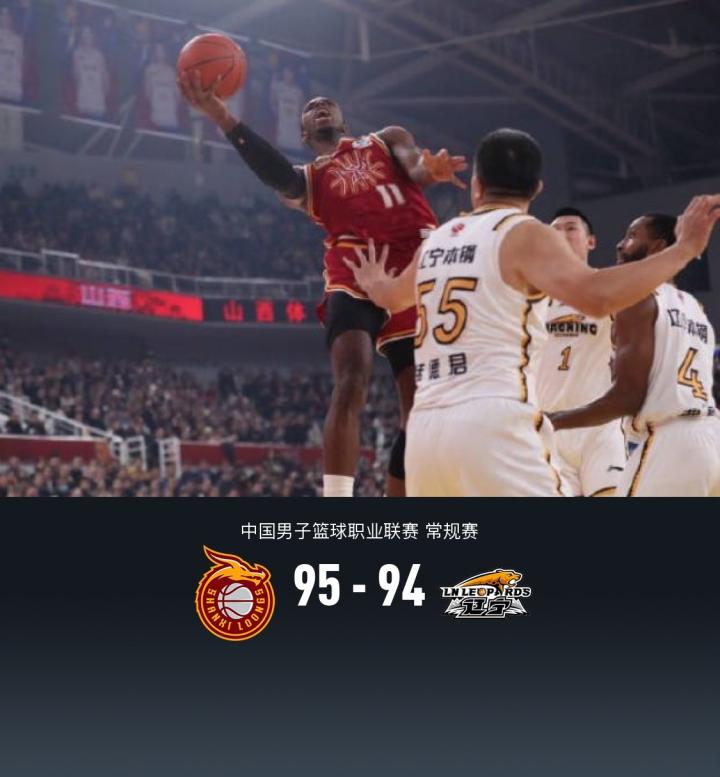 第四节山西张宁拿下6分,辽宁德兹明-威尔斯拿下15分,最终山西95-94战胜辽宁