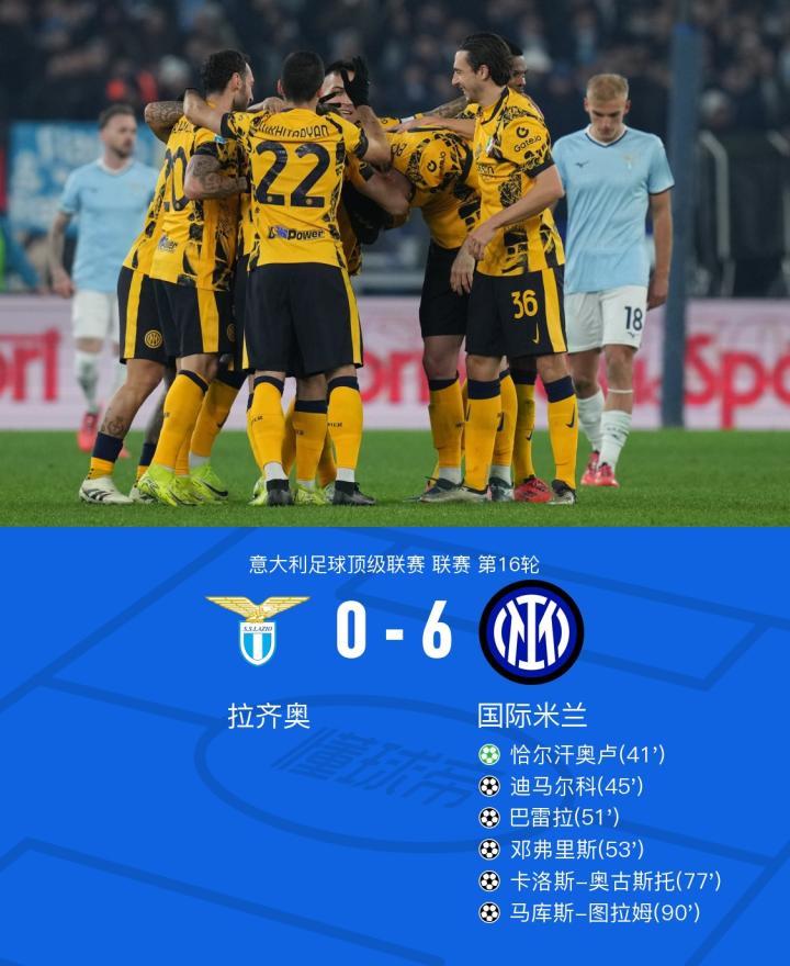 剑南春|国米6-0客胜拉齐奥,恰20、邓弗里斯、迪马尔科传射