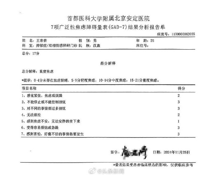 此外,王亲亲还表示,自那以后,他开始患上抑郁症。9月26日,他收到了一份来自江苏省体育局武术运动管理中心的告知书,以未能履行运动员训练、比赛工作职责为由,他将被停训退役。对此王亲亲表示:“那段时间我要请假看病,领导却一直不给我批假。”