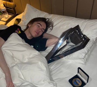 冠军指定睡姿?donk抱着奖杯入睡,复刻梅西、C罗等人名场面