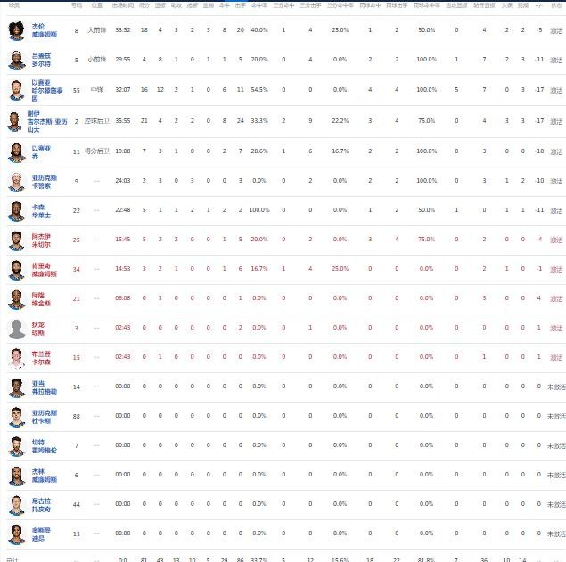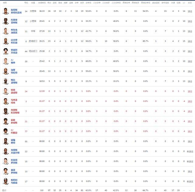 密尔沃基雄鹿字母哥26分19板10助2断3帽,利拉德23分4板4助1断,特伦特13分3板1助1断。