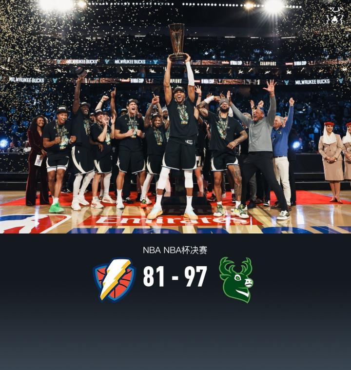 北京时间12月18日,NBA杯决赛雷霆对阵雄鹿。本场雷霆进攻低迷三分手感极为冰凉,上半场雷霆三分17中1情况下还能咬住比分,半场雄鹿51-50雷霆,下半场雷霆彻底哑火仅得31分,雄鹿多点开花持续拉大分差末节最大领先20分,最终雄鹿97-81雷霆夺NBA杯冠军!字母哥荣获MVP!
