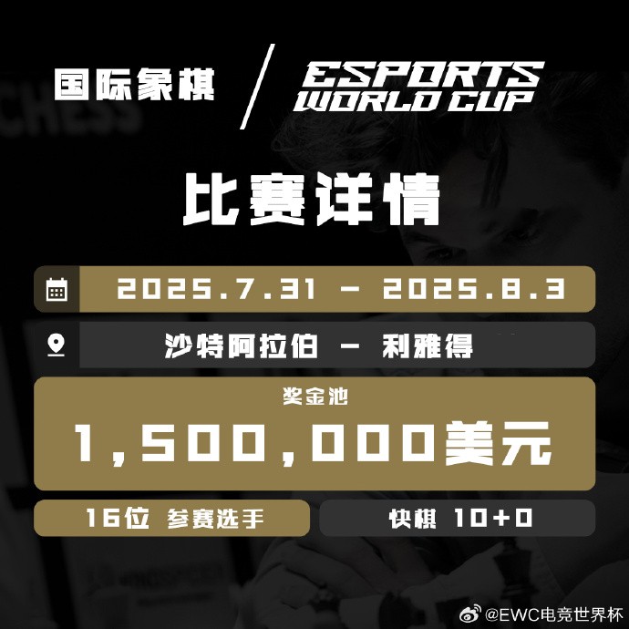 国际象棋进入明年电竞世界杯比赛项目,16名棋手争千万元奖金我的靴子里面有蛇 @懂球帝2024-12-18 22:03北京时间12月18日,2025电竞世界杯官方消息,国际象棋被列入明年沙特电竞世界杯的比赛项目。比赛将采用快棋赛制,参赛者有10分钟比赛时间。将有16名棋手参赛,奖金为150万美元(约1092万元)。比赛时间为2025年7月31日至8月3日。今年的首届电竞世界杯于7月3日至8月25日在沙特利雅得举行,共设置了19个比赛项目,总奖金额达到创纪录的6000万美元。展开更多