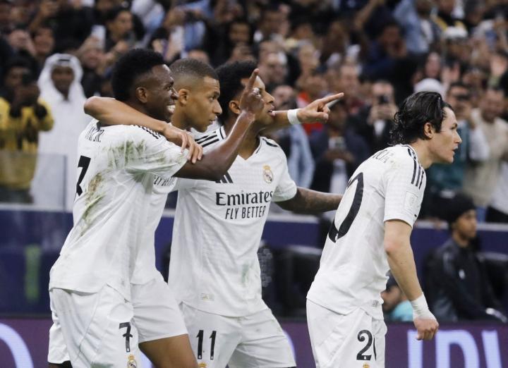 今夏加盟皇家马德里在姆巴佩在欧洲超级杯决赛上演皇马生涯首秀并打入一球,本场洲际杯决赛,姆巴佩为皇马首开记录。