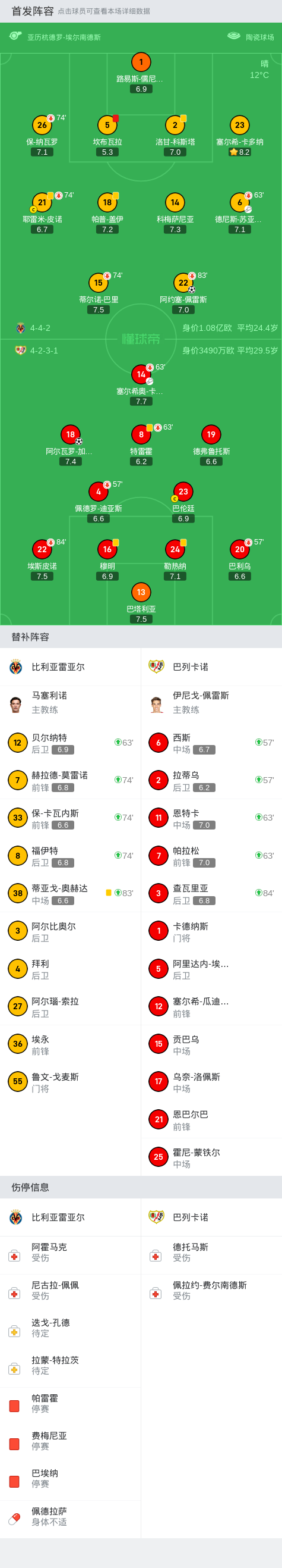 十人比利亚雷亚尔1-1巴列卡诺,加西亚先拔头筹,佩雷斯扳平,坎布瓦拉染红