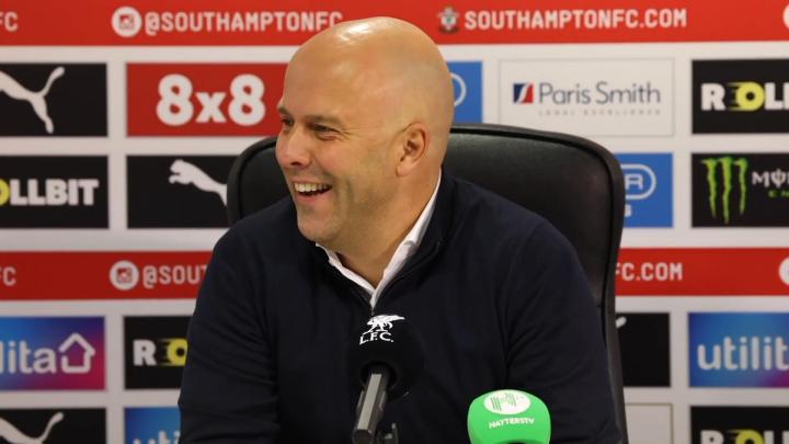 在英格兰联赛杯1/4决赛客场2-1击败南安普顿之后,因为停赛只能在看台上观战的利物浦主教练斯洛特出席了新闻发布会。