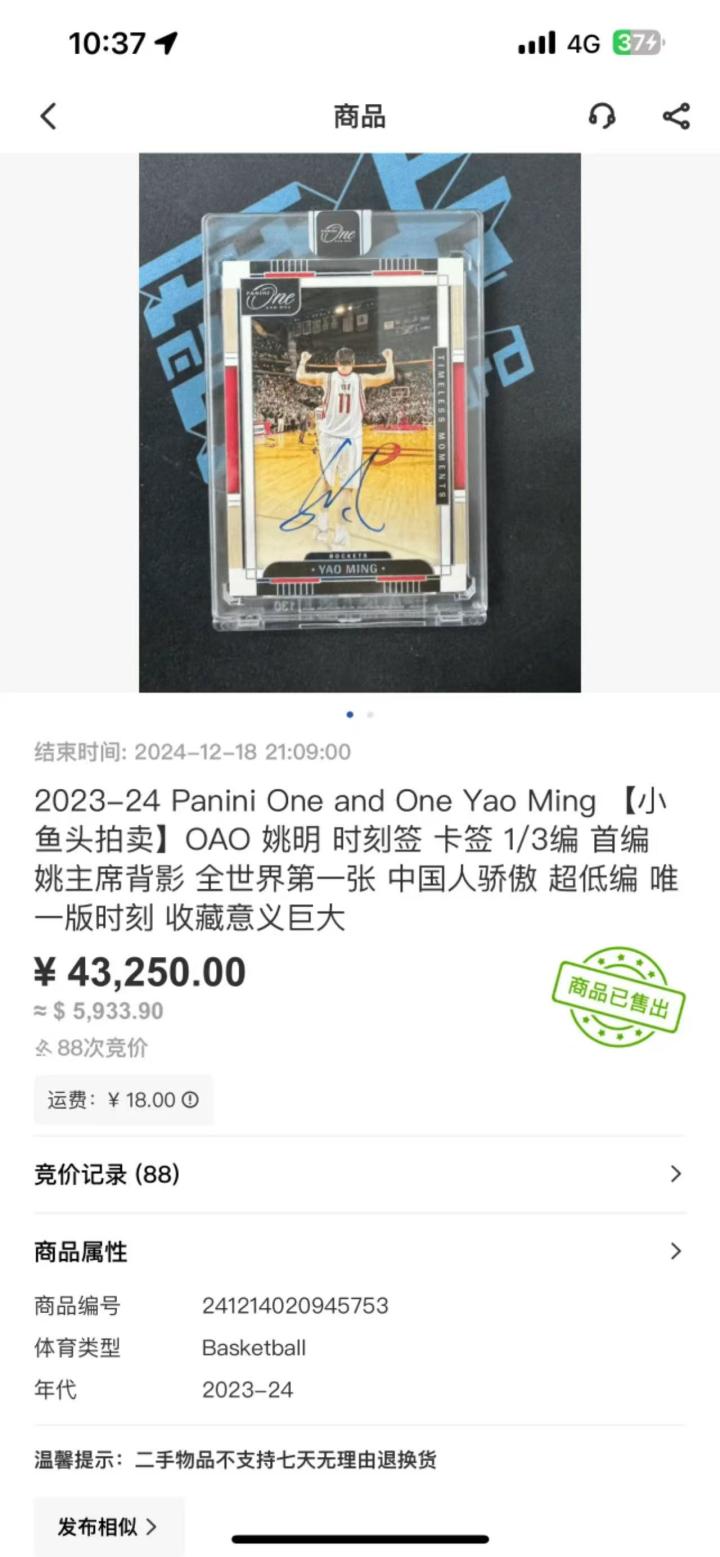 oao系列球星卡发售,姚明时刻签成交价高达4.3万