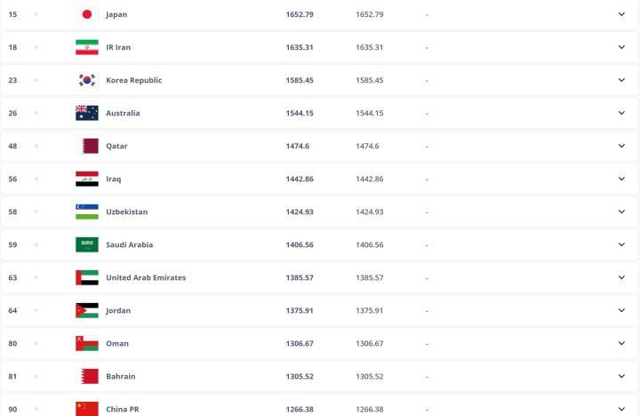 FIFA年终排名:日本世界第15亚足联第一,韩国世界第23