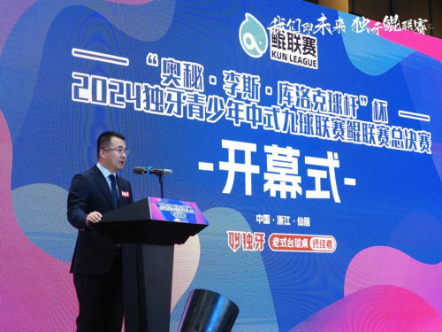 浙江亿辰台球有限公司总经理李康迪上台致辞,作为鲲联赛总决赛冠名方,对“奥秘?李斯?库洛克球杆”杯2024独牙青少年中式九球联赛成功举办表示热烈祝贺,看到众多台球新生代球员满怀激情、蓬勃发展,深感欣慰,期待他们带来更多惊喜,奥秘、李斯、库洛克品牌荣幸成为其逐梦支持者,并将持续助力台球运动发展。回顾第一届鲲联赛在临海李氏中心举办见证的青少年台球发展,展望未来,坚信新生代球员能创造无限可能,愿与他们并肩助力台球梦想腾飞,书写辉煌篇章。