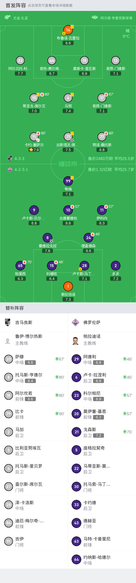 佛罗伦萨1-1客场绝平吉马良斯,曼德拉戈拉救主
