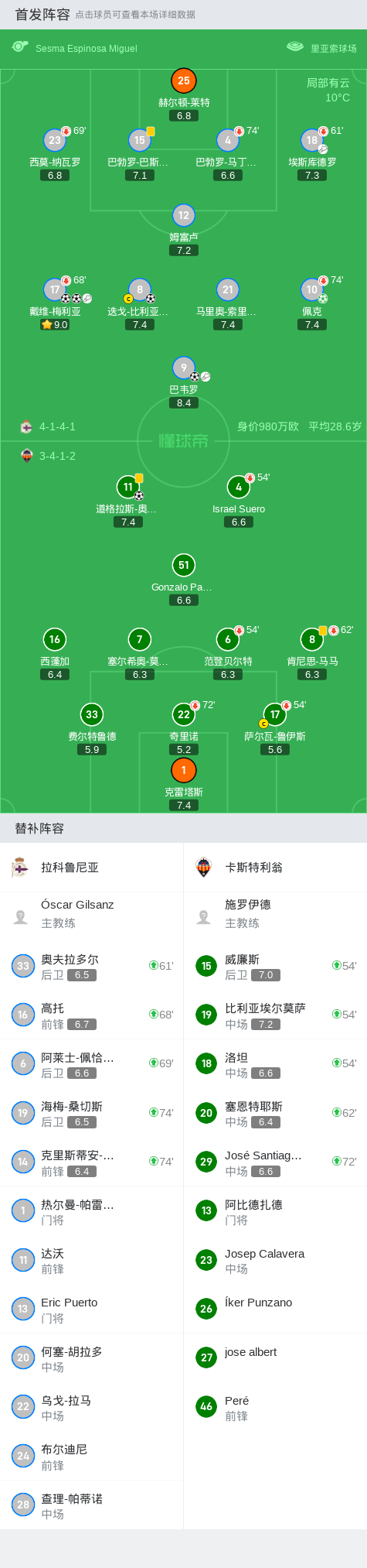 第36分钟,拉科鲁尼亚球员埃斯库德罗助攻戴维-梅利亚打入一球。