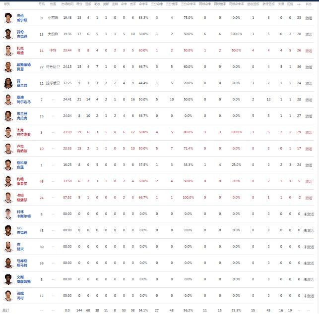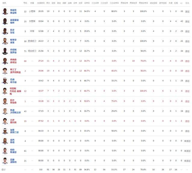 球员全场数据