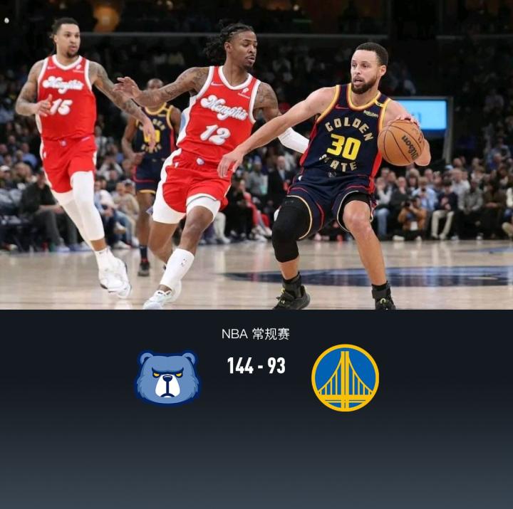 勇士93-144惨败灰熊51分!库里7中0得2分,施罗德首秀12中2