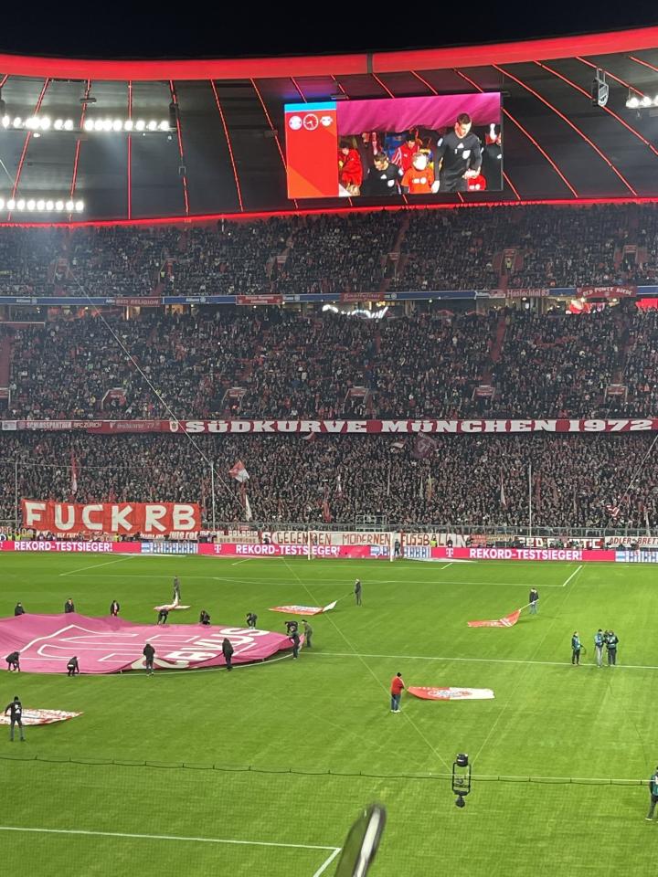 本场比赛开始前,拜仁慕尼黑球迷在安联球场看台打出了“F**K RB”的横幅,非常直白地攻击RB莱比锡,表达他们对红牛集团的抵制。