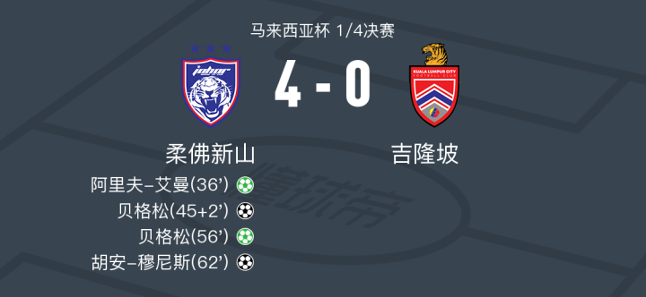 柔佛新山4-0大胜吉隆坡,贝格松梅开二度,胡安-穆尼斯建功