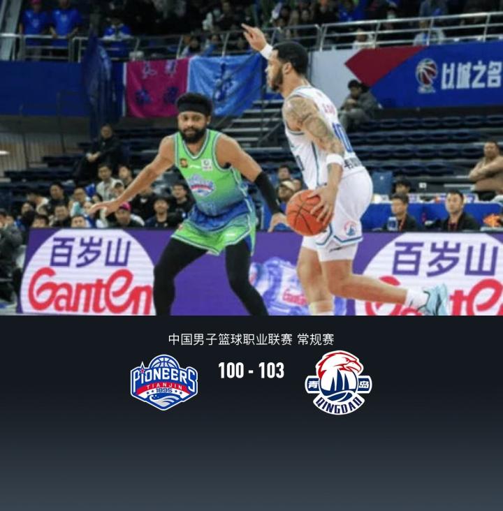 北京时间12月21日CBA常规赛,半场天津52-49青岛,最终天津100-103青岛。