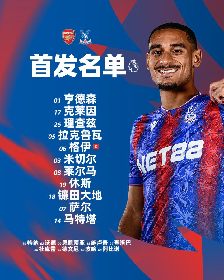 水晶宫 vs 阿森纳丨首发公布马特塔先发出战,查...