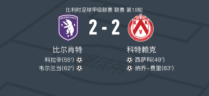 第49分钟,科特赖克球员德内夫助攻西萨科打入一球。