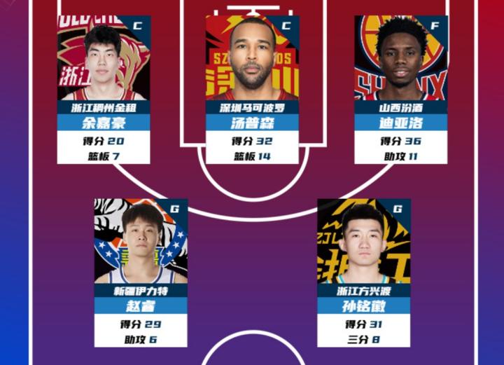 CBA第20轮最佳阵:赵睿、孙铭徽、余嘉豪、迪亚洛&汤普森入选