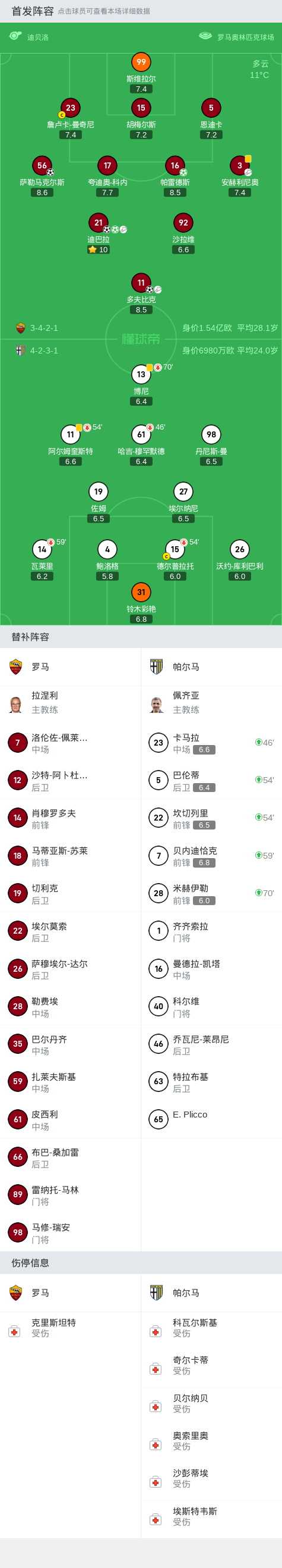 第72分钟,萨勒马克尔斯造点,帕雷德斯主罚命中,罗马4-0帕尔马