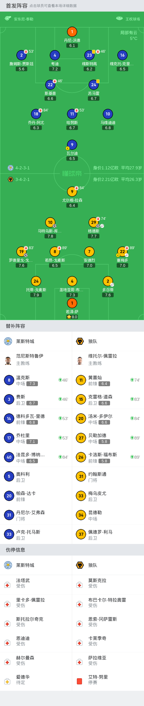 狼队3-0完胜莱斯特城,格德斯传射,库尼亚、戈麦斯建功