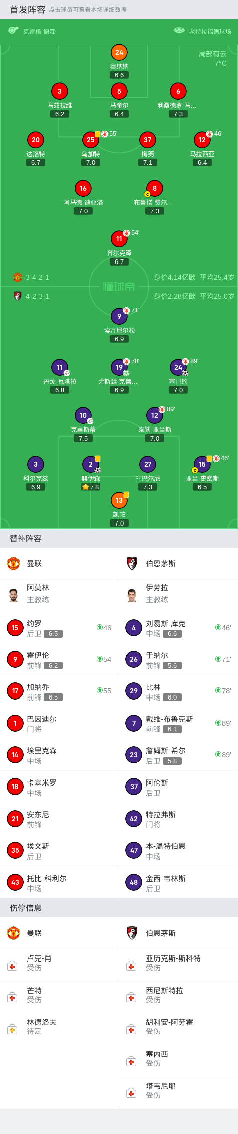 第61分钟,马兹拉维送点,克鲁伊维特主罚命中,伯恩茅斯2-0领先曼联
