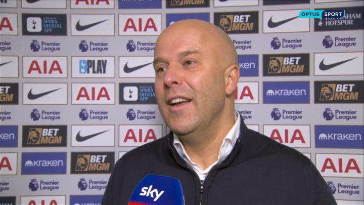 率队在英超第17轮客场6-3击败托特纳姆热刺之后,利物浦主教练斯洛特接受了来自天空体育的采访。