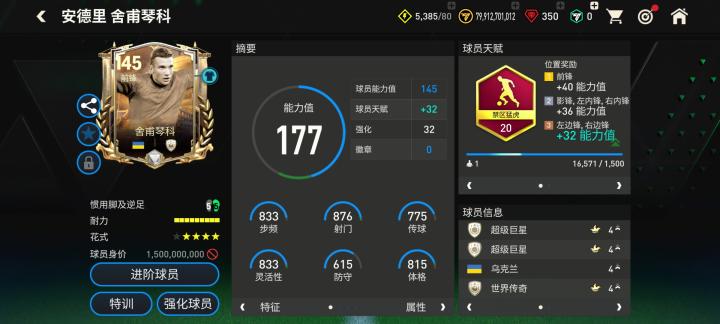 舍甫琴科在本次三国·赤壁活动推出的球员卡配备了禁区猛虎天赋,对他的加射门、射门力量、抢点、盘带、力量五项数据都有提升。花式方面,马赛回旋搭配四星花式星级的配置也让舍甫琴科的前场盘带表现更为稳定。