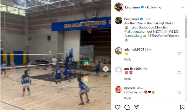 去年,詹姆斯在个人社媒上分享了一段视频,视频中他现场观战了朱莉的一场排球比赛,并在看台上为女儿欢呼。