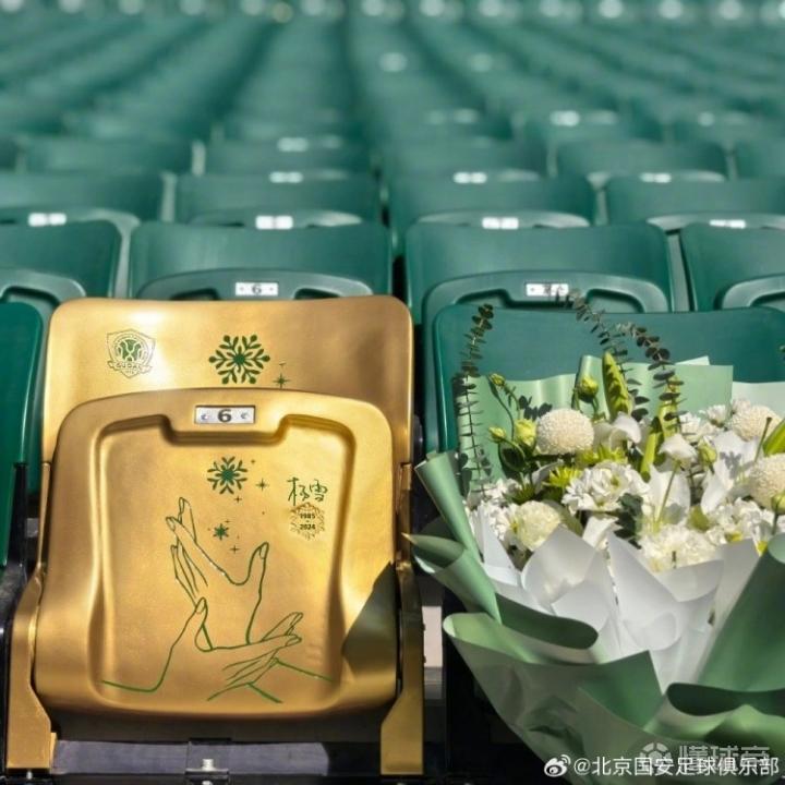 在象征着历史文化与传承的工人体育场里那焕然一新的看台上,一把金色座椅格外耀眼,宛如洒落人间的光辉。座椅上镌刻着“杨雪”二字,静静诉说着一段忠诚与热爱的故事。这把金色的座椅象征着她对于球队的热爱,也象征着她追随球队的那些无悔的金色年华。