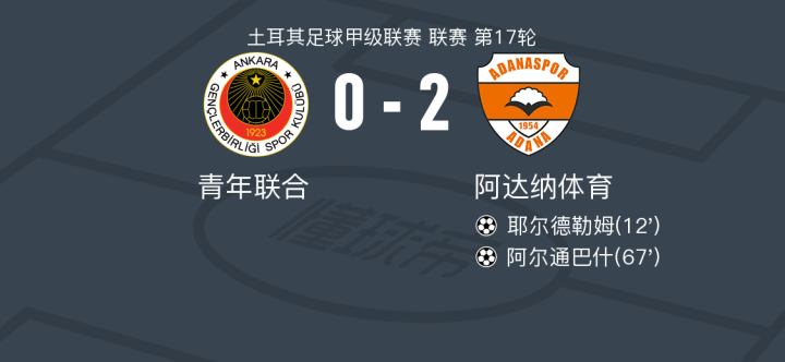 阿达纳体育2-0青年联合,耶尔德勒姆破门,阿尔通巴什锦上添花
