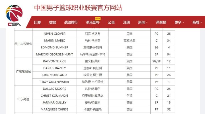 根据CBA官网的最新信息,广东男篮目前注册了四名外援,分别是莱斯、贝兹利、莫兰德和吉伦沃特。
