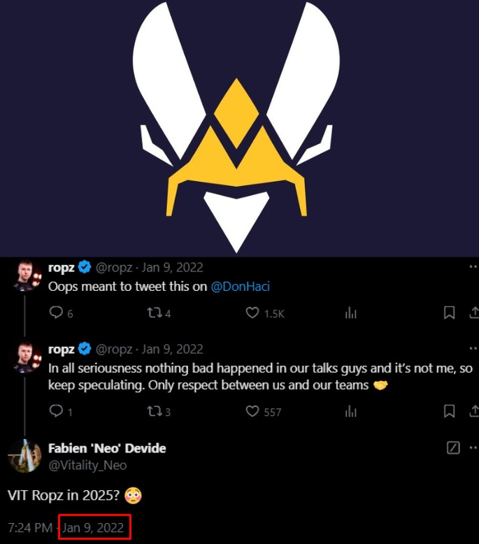 Vitality的创始人Neo回复道:“那么ropz就在2025年加入VIT?”三年过去了,Neo的留言一语成谶,ropz真的即将在2025年披上Vitality的队服。