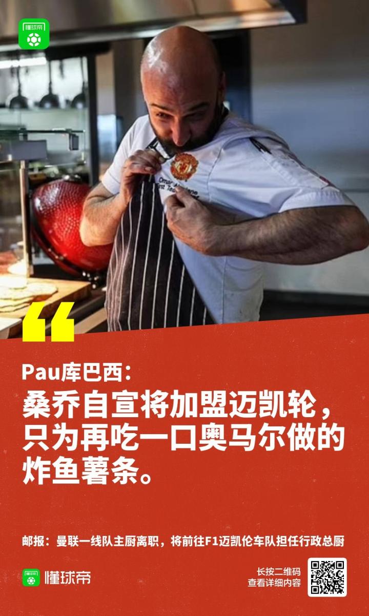 曼联一线队主厨“转会”,我懂球迷如何评价?候亮评 @懂球帝2024-12-25 09:22邮报曝曼联一线队主厨离职,将前往F1迈凯轮车队担任行政主厨,看看我懂球迷如何评价曼联这波“屋漏偏逢连夜雨”?展开更多