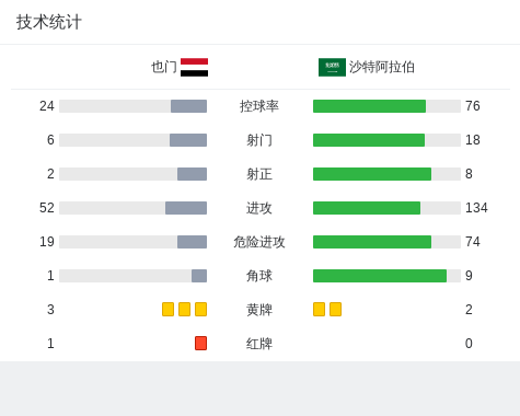 下半场补时第5分钟,也门球队拉米-瓦斯马尼吃到第二张黄牌。